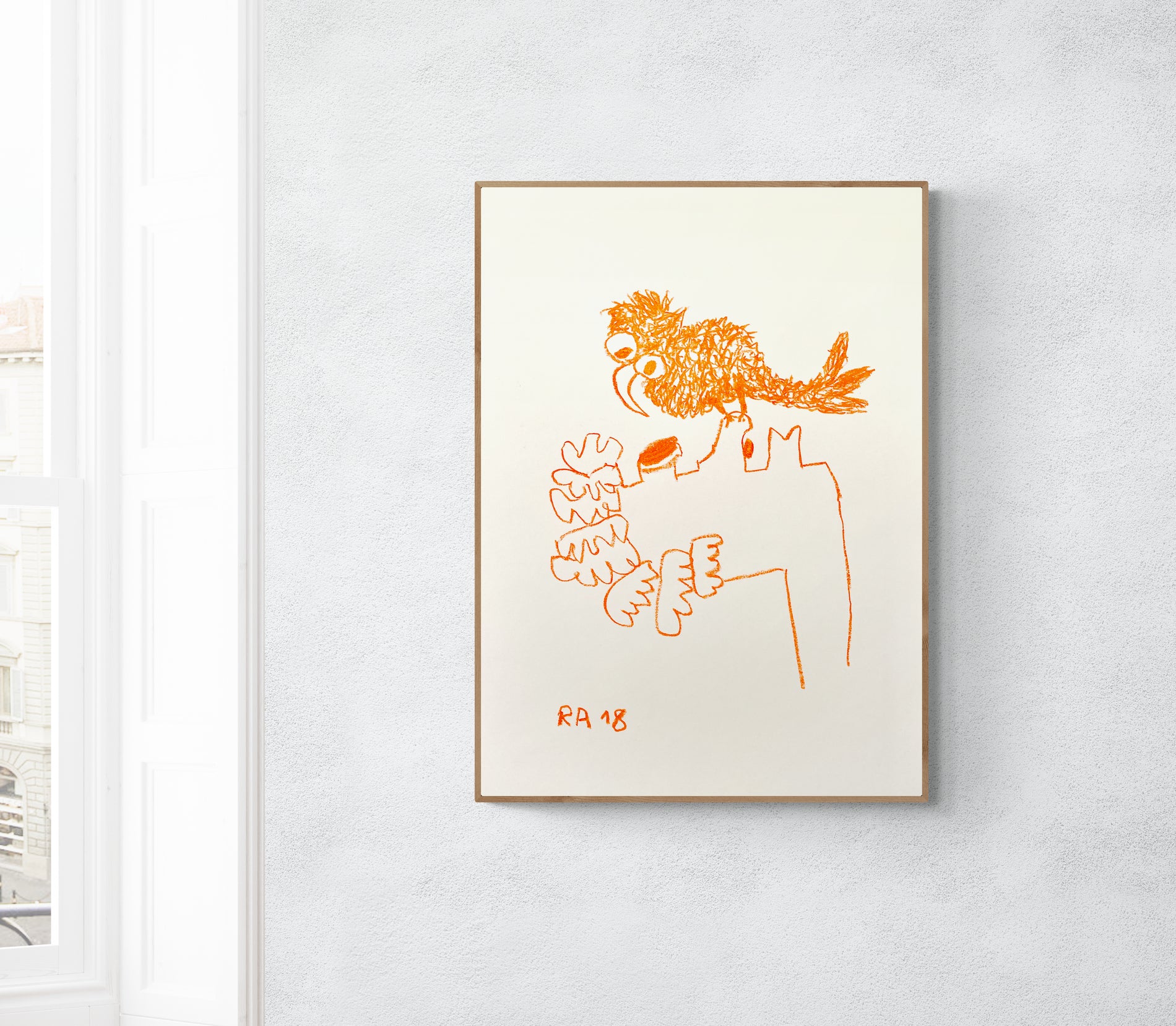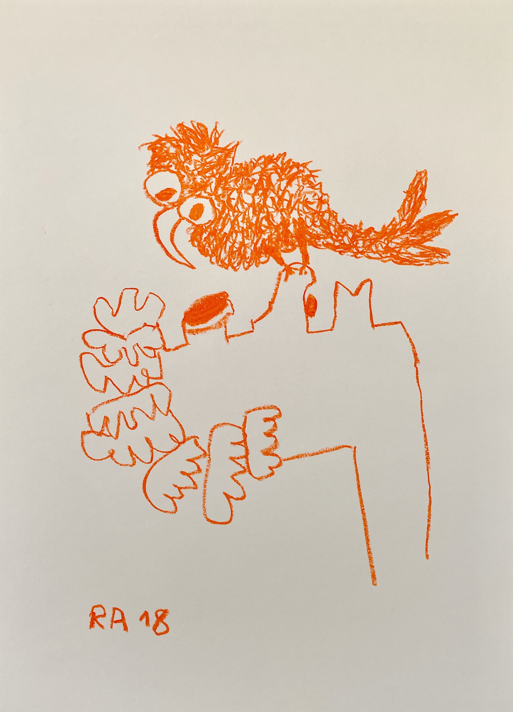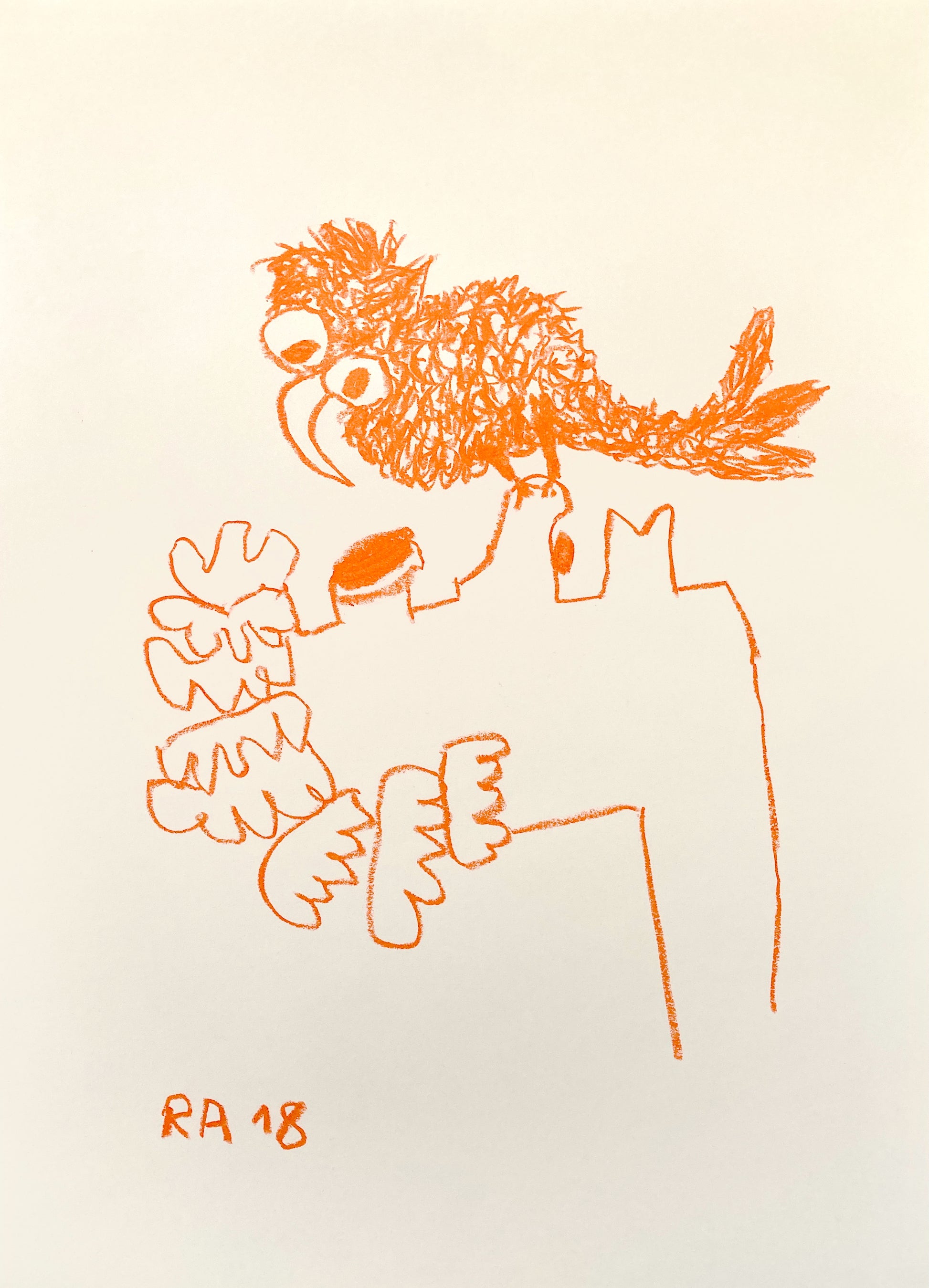 Ceci est un dessin au pastel sur papier écru/blanc crème, une oeuvre unique réalisée en 2018. Il fait partie d'une série intitulée Girl and Bird, composé d'environ 38 dessins. Celui-ci est le n°11.